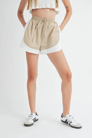 MABLE Drawstring Waist Contrast Trim Detail Shorts