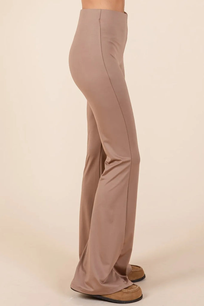 These pants are made from stretchy, soft weightless knit fabric, providing ultimate comfort and flexibility. Featuring a mid-rise waist with an elastic waistband, they offer a secure and flattering fit. The flared leg design adds a stylish touch, making these pants perfect for both casual outings and dressy occasions. Pair them with a fitted top or oversized sweater for a chic, effortless look that’s perfect for any season!