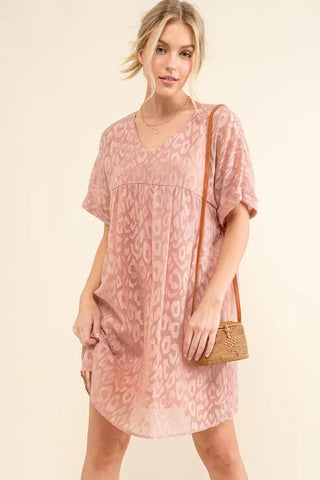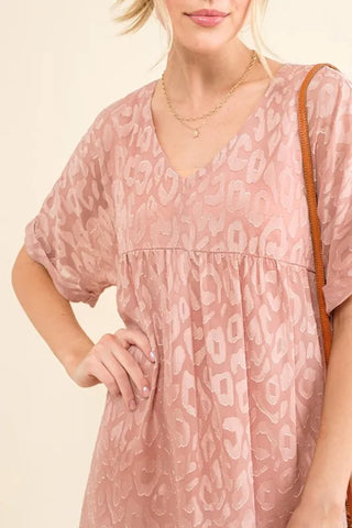 The woven leopard baby doll roll-sleeve casual dress is a trendy and chic option for a stylish and laid-back look. The leopard print adds a bold and fashion-forward element to the dress, perfect for making a statement. The baby doll silhouette is flowy and comfortable, making it easy to wear all day. The roll sleeves add a casual and relaxed touch, giving the dress a versatile appeal. Pair this dress with sneakers or sandals for a cool and effortless outfit that is perfect for everyday wear.