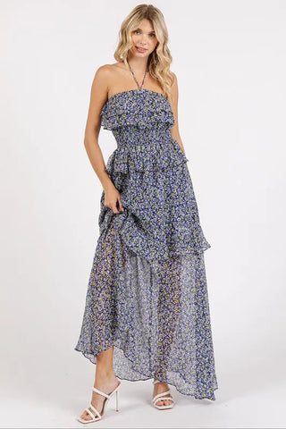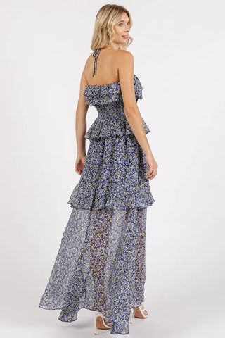 The Ruffled Smocked Floral Halter Neck Maxi Dress is a stunning and feminine piece that exudes effortless elegance. Featuring a halter neckline with ruffled detailing, this dress offers a romantic and chic look. The smocked waist adds definition and flatters the figure, while the floral print adds a touch of whimsy and charm. Perfect for special occasions or a casual day out, this maxi dress is sure to turn heads wherever you go.
