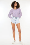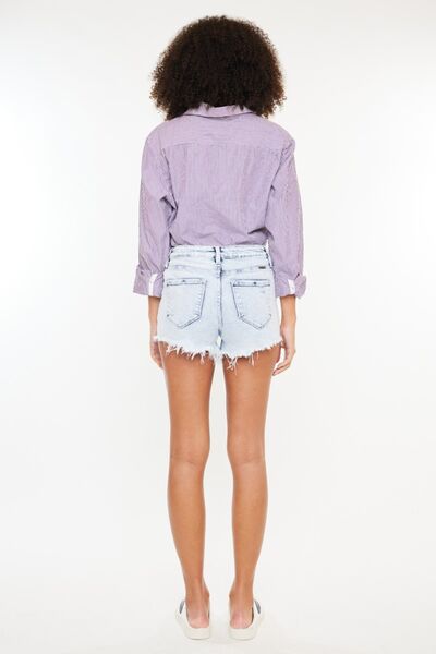 The High Rise Frayed Hem Denim Shorts are the perfect blend of trendy and versatile for your summer wardrobe. Featuring a flattering high-rise waist, these shorts offer a stylish and comfortable fit. The frayed hem adds a touch of edge and casual charm to your look. Made from quality denim fabric, these shorts are durable and perfect for everyday wear. Pair them with a simple tee for a laid-back vibe or dress them up with a blouse and sandals for a chic summer outfit. With their on-trend design and versatile styling options, the High Rise Frayed Hem Denim Shorts are a must-have for the season.