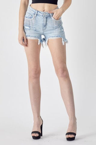 These Frayed Hem Denim Shorts with Fringe Detail Pockets are the perfect addition to your summer wardrobe. The frayed hem adds a trendy and laid-back touch, giving these shorts a cool and casual vibe. The fringe detail on the pockets adds a unique and eye-catching element, making these shorts stand out from the rest. Made from high-quality denim, they are comfortable and durable for all-day wear. These shorts are versatile and can be easily paired with your favorite tops and sandals for a stylish and effortless look. Whether you're headed to the beach or out for a summer adventure, these frayed hem denim shorts with fringe detail pockets will make you look and feel fabulous.