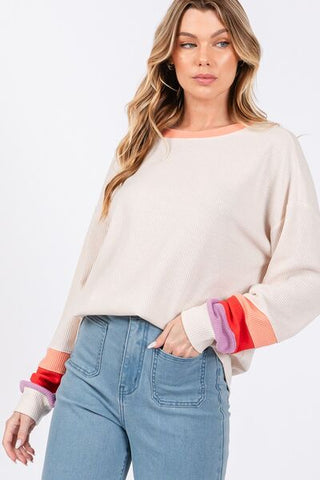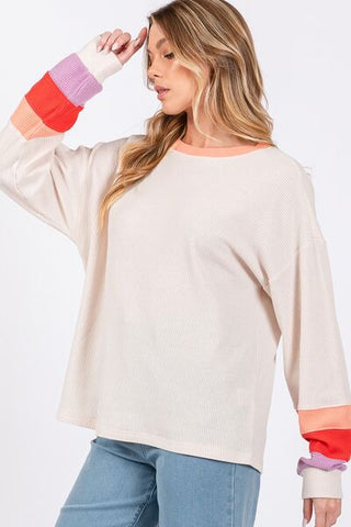 This casual top features seam color block raglan sleeves with a contrast crew neckline, creating a stylish and modern look. The pullover shirt is easy to wear, while the color-blocked long sleeves add a trendy touch. Made with waffle knit fabric, this top offers a cozy and comfortable feel. The relaxed and loose fit makes it perfect for casual days when you want to feel laid-back yet fashionable.