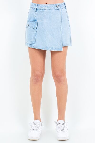 The cargo pocket mini length skort features a button waist closure and a slim, mini length fit for a trendy and flattering look. This versatile piece combines the style of a skirt with the comfort and practicality of shorts, making it a must-have for your wardrobe. The cargo pockets add a touch of utility-inspired style while providing functional storage. The button waist closure ensures a secure and adjustable fit for all-day comfort. With its mini length and slim silhouette, this skort is perfect for pairing with your favorite tops and shoes for a chic and effortlessly stylish outfit. Elevate your casual look with the cargo pocket mini length skort for a fashionable and functional addition to your collection!