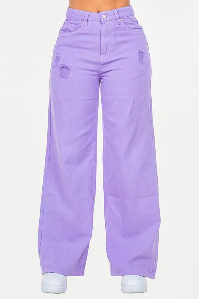 High Waist Distressed Wide Leg Jeans are a fashion-forward choice for those looking to add a trendy edge to their wardrobe. The high waist design sits above the natural waistline, providing a flattering and slimming effect on the midsection. The wide leg silhouette offers a relaxed and comfortable fit, perfect for creating a stylish and effortlessly chic look. The distressed detailing adds a touch of edginess and a lived-in feel to the jeans, enhancing their casual and cool vibe. These jeans are versatile and can be paired with various tops and footwear for a range of stylish outfits.