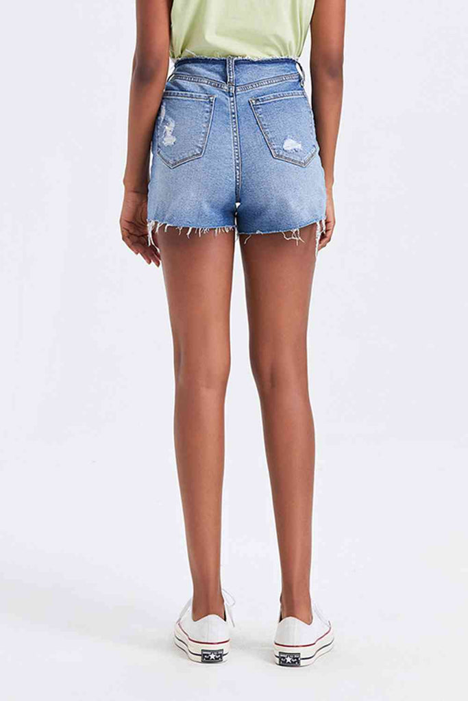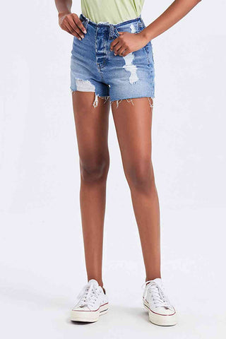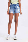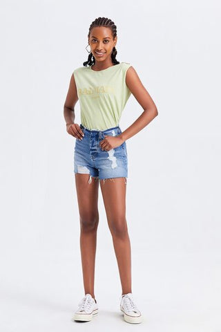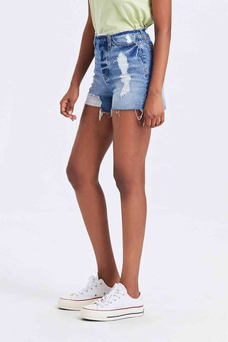 High Rise Bandless Denim Shorts offer a sleek and modern take on classic denim shorts with their bandless waist design that creates a clean and streamlined look. The high-rise fit elongates the legs and provides a flattering silhouette that pairs well with various tops and shoes. Crafted from premium denim material, these shorts are both durable and comfortable for all-day wear. The absence of a waistband adds a contemporary touch to the design, perfect for creating chic and sophisticated outfits. Style these shorts with a crop top or a tucked-in shirt for a fashion-forward ensemble that showcases your trendy and minimalistic aesthetic. Embrace a fresh and polished summer look with these versatile High Rise Bandless Denim Shorts.