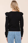 The Contrast Trim Ruffled Round Neck Knit Top combines a classic round neck design with stylish ruffled detailing and contrasting trim. The ruffles add a feminine touch to the top, while the contrast trim adds visual interest and a modern twist. The knit fabric ensures comfort and a versatile look that can be dressed up or down for various occasions.