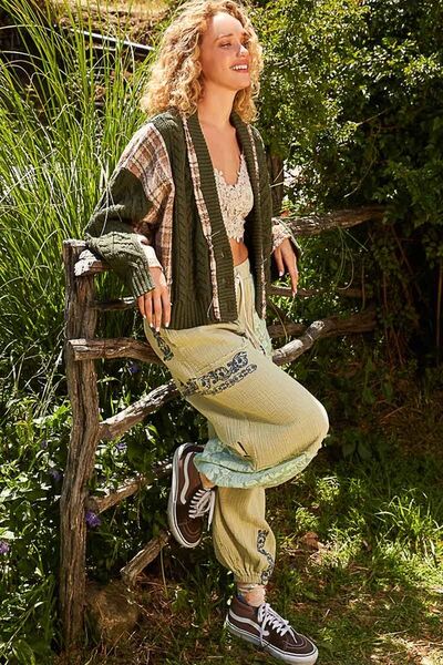 A cable-knit plaid V-neck button-up cardigan is a cozy and stylish piece that combines several classic design elements. The cable-knit pattern features a textured stitch design reminiscent of intertwined cables, adding depth and interest to the fabric. The plaid detailing likely refers to a classic plaid pattern incorporated into the design, providing a traditional and timeless touch to the cardigan. The V-neckline offers a flattering and versatile neckline style that can be paired with various tops underneath. Additionally, the button-up front allows for easy closure and layering options. Overall, this cardigan is a versatile and chic piece that can be worn for a cozy casual look or layered over a dressier outfit.