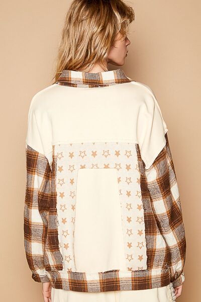 The Plaid & Star Patchwork Contrast Long Sleeve Shacket is a unique and stylish fusion of a shirt and a jacket. The plaid pattern adds a classic touch, while the star patchwork detailing provides a fun and modern twist. This shacket is perfect for layering and adding a statement piece to your outfit. The long sleeves offer versatility for changing weather, making it a practical and fashionable choice for your wardrobe. Whether you dress it up or down, this shacket is a perfect combination of style and functionality that is sure to turn heads.
