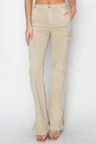 Elevate your denim game with these high-rise side slit cargo bootcut jeans. The unique design features a flattering high waist and a trendy bootcut leg silhouette. The side slits add a touch of edgy detail, while the cargo pockets bring a utilitarian vibe to the classic denim style. These jeans are versatile and can be dressed up or down for various occasions. Pair them with a tucked-in blouse and heels for a chic evening look, or opt for sneakers and a graphic tee for a more casual vibe. Step out in style with these on-trend and statement-making cargo bootcut jeans.