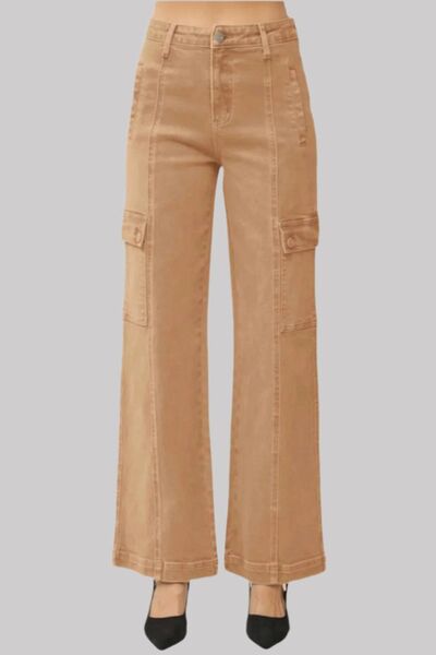 The high rise wide leg cargo jeans combine style and functionality for a trendy look. Featuring a flattering high-rise fit, these jeans offer a comfortable silhouette while the wide leg design adds a modern flair. Equipped with cargo pockets, they provide practicality without sacrificing style. Perfect for casual outings or a laid-back day, you can easily pair them with a fitted top or oversized sweater for a chic, effortless ensemble. Ideal for those who appreciate both fashion and utility!