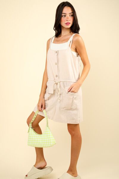 Step out in style with this chic Half Button Drawstring Sleeveless Romper, perfect for a casual day out or a fun night with friends. The half-button design adds a touch of sophistication, while the drawstring waist allows for a customizable fit. Featuring a sleeveless design, this romper is ideal for warmer weather and can be easily layered for cooler evenings. The versatile and trendy romper can be dressed up with heels or dressed down with sandals for a variety of looks. The flattering silhouette and comfortable fabric make this romper a must-have piece for your wardrobe. Elevate your outfit game with this stylish and effortless romper that is both stylish and comfortable.