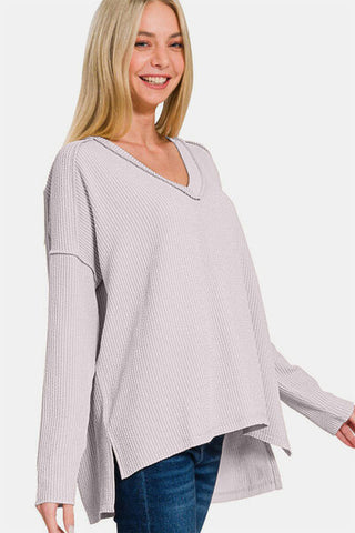 - Features: Basic style, Ribbed, Exposed seam, High-Low